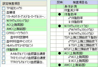 主に使用する検査項目を、「反映」にチェックをつけることで、一覧で確認できますので管理がスムーズです。