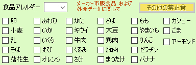 個人ごとに基本的なアレルギー食品の登録ができ、その他の食品も追加で登録することができます。