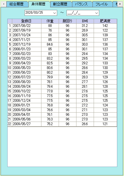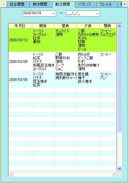 登録されている日付を ダブルクリックすると、個人情報画面がその日の情報に切り替わります。